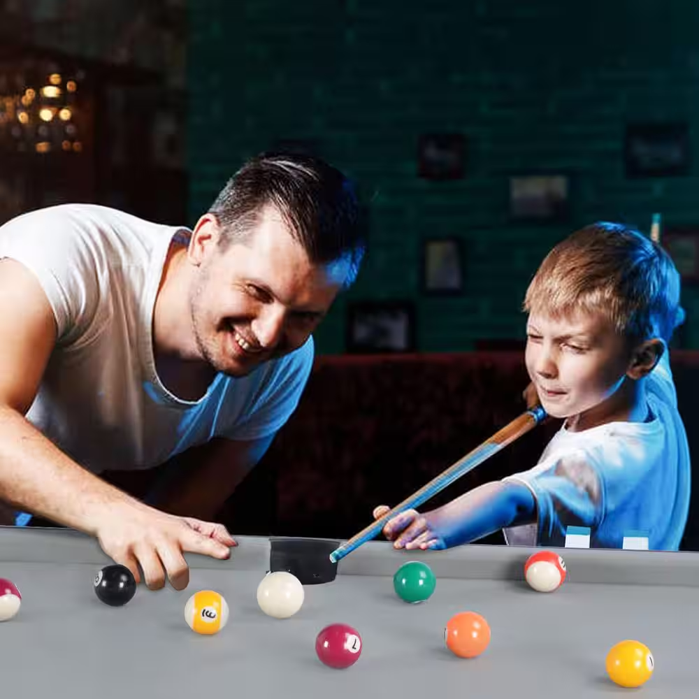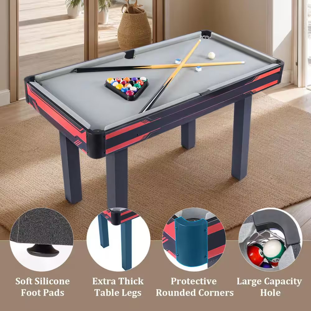 48 in. Complete Pool Table SetBig League Fun, Right in Your Living Room Turn any room into your personal billiards hall with our 48 in. Pool Table – the perfect blend of sleek design, portability, and authentic gameplay. Whether you’re teaching kids the basics or showing off trick shots to friends, this table brings endless fun to players of all skill levels.
