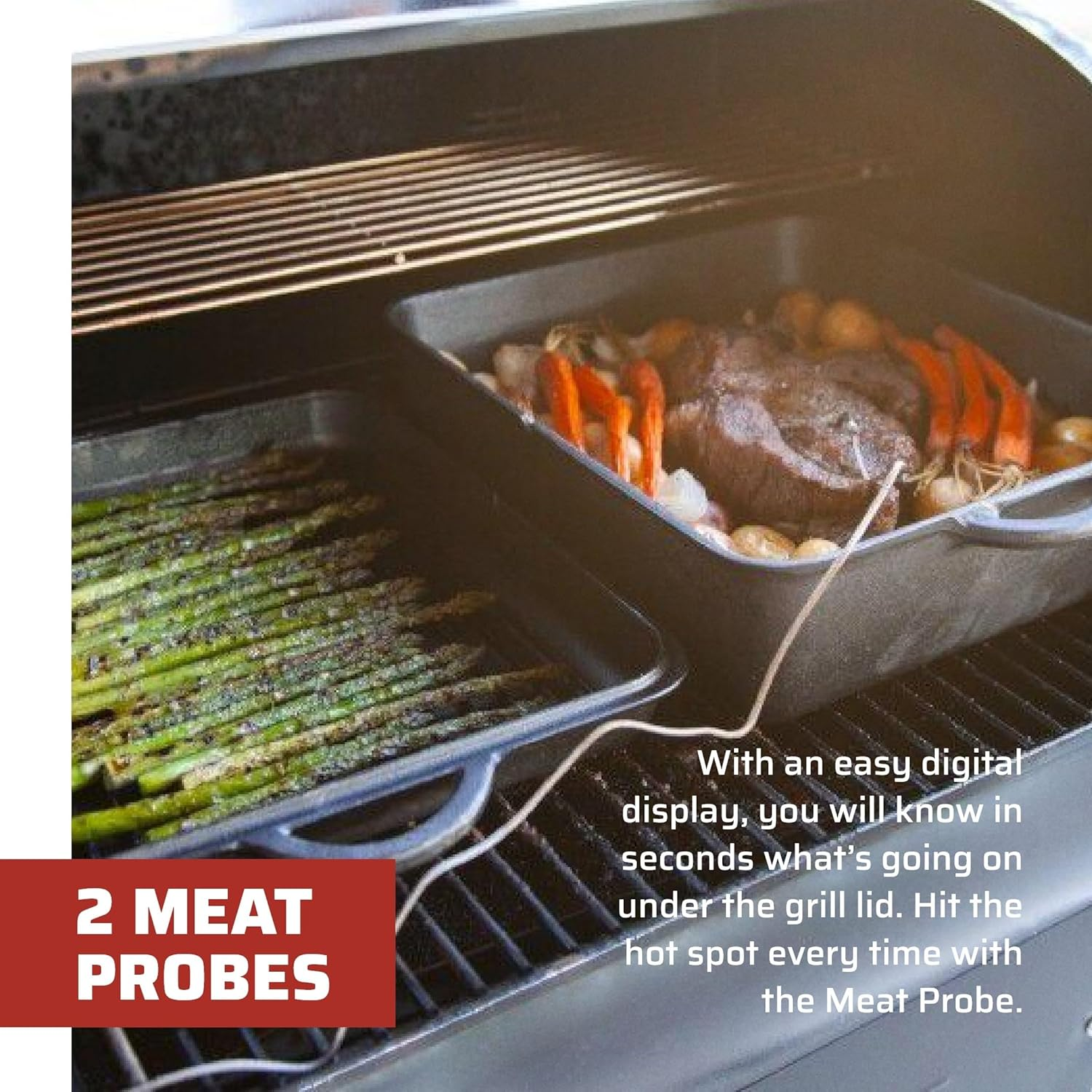 Have total control over the temperature of your food. With an easy digital display, you will know in seconds what’s going on under the grill lid. Hit the hot spot every time with the Meat Probe.