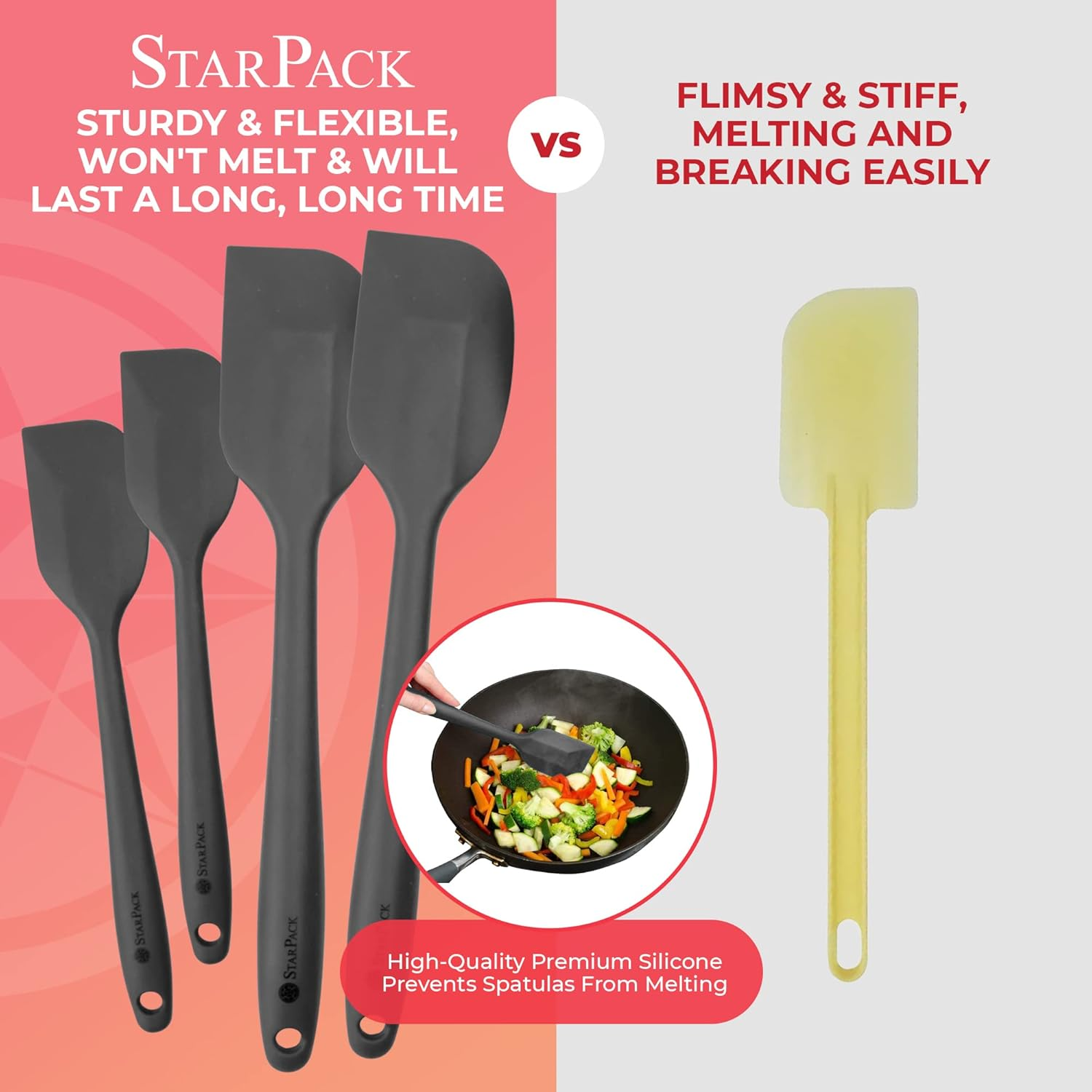 - Our customer favorite silicone rubber spatula set – mix & scrape the bowl, flip pancakes and more. Hygienic one-piece design, high heat resistant to 600°F, non scratch and safe for all types of nonstick cookware including ceramic