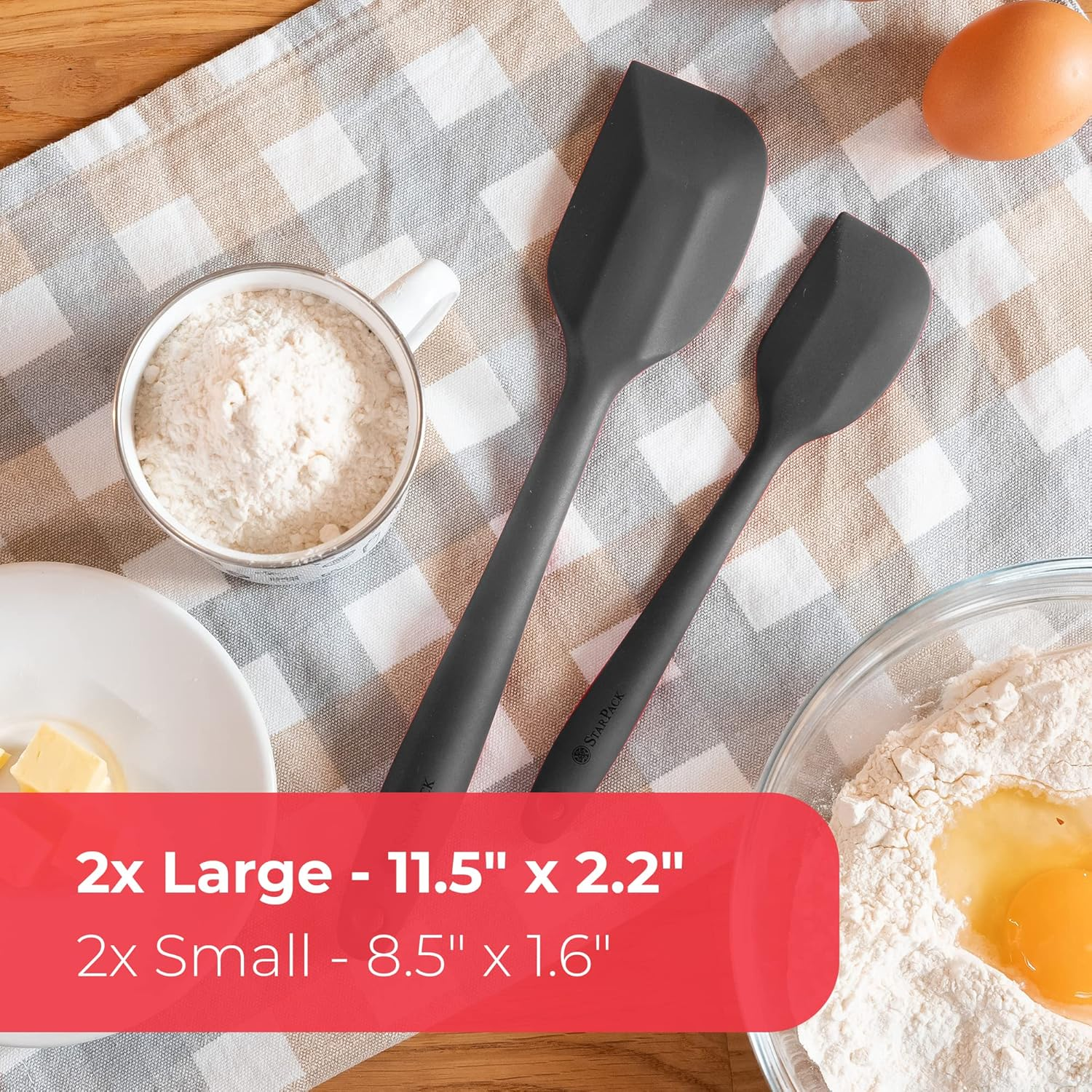 - Set includes: 2 x Scrape & Stir – Large Rubber Spatula: 11.5″ x 2.2″ and 2 x Scrape & Stir – Small Rubber Spatula: 8.5″ x 1.6″. Easy clean and dishwasher safe, for increased longevity just wipe clean in soapy water as food just slides right off!
