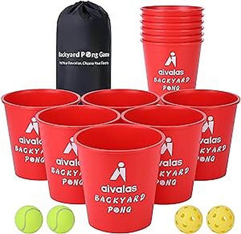 Yard Pong Outdoor Games Set, Giant Yard Pong Game for Adults and Family with 12 Buckets, 4 Balls and a Carrying Bag, Giant Pong for Beach, Camping, Lawn and Backyard